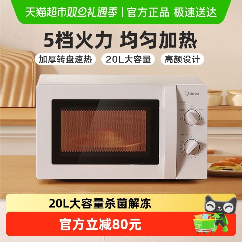 美的微波炉家用机械版小型杀菌多功能转盘旋钮213B