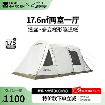 牧高笛(MOBIGARDEN)揽盛帐篷 户外露营两室一厅大空间防风防雨多门大前厅隧道帐篷 揽盛3杆/晨雾白