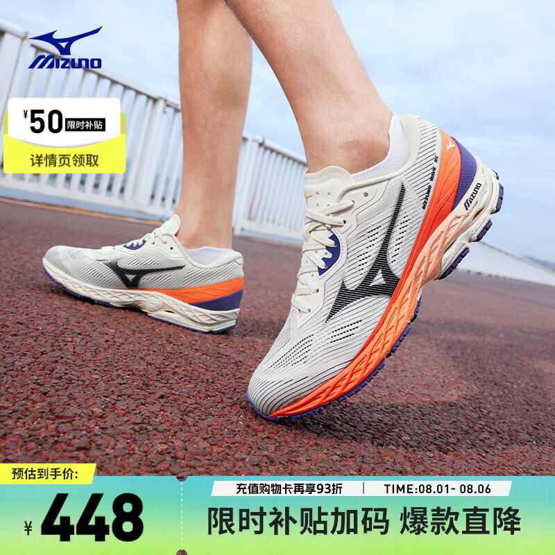 美津浓(MIZUNO)2025新款缓震回弹透气耐磨竞训运动跑步鞋WAVE RC 02/米白色 42