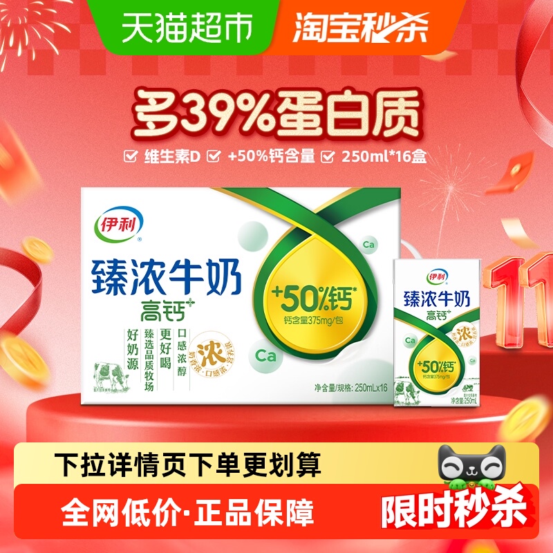 伊利臻浓高钙牛奶250ml*16盒整箱学生早餐咖啡伴侣烘焙
