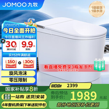 九牧(JOMOO)白魔方无水压限制旋风魔力泡脚感冲水轻智能马桶SQ8450-S0-CJM400