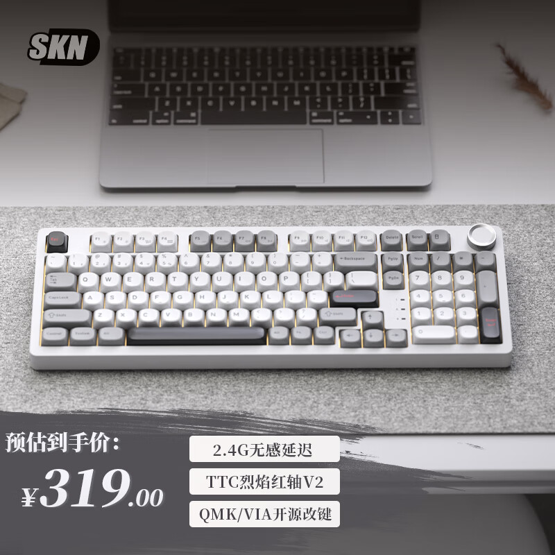 SKN青龙4.0 机械键盘 三模无线键盘 98配列键盘 Gasket结构客制化键盘 ZMK/QMK方案 2U大键0 青龙4.0雷-TTC烈焰红轴V2RGB