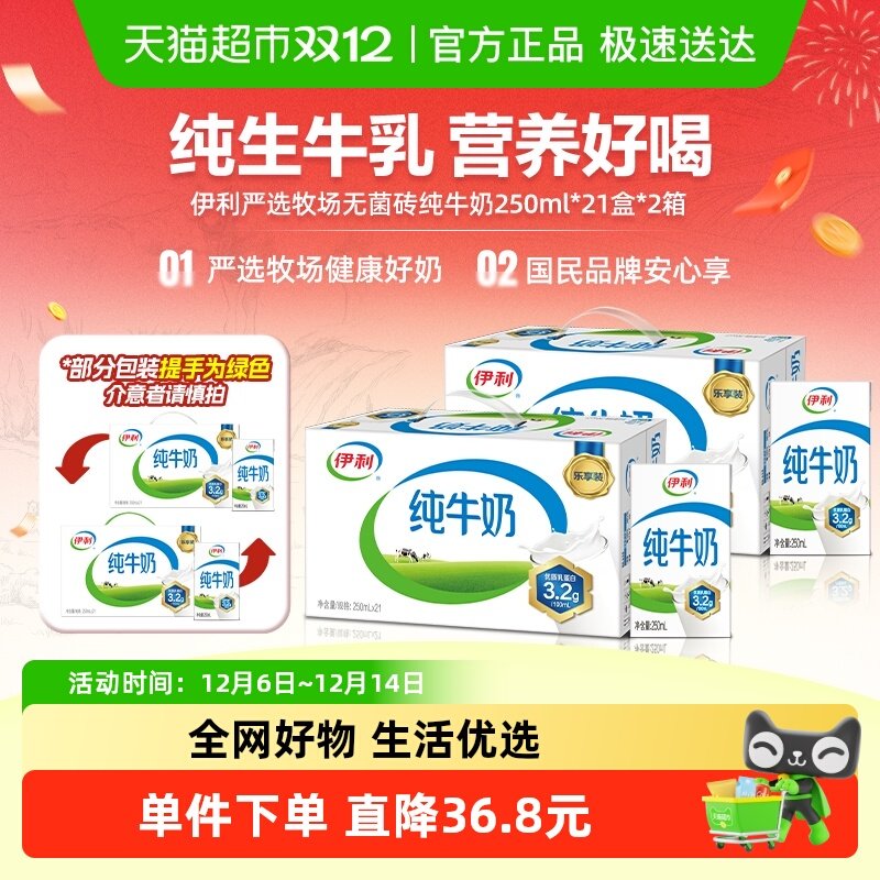 伊利纯牛奶250ml*42盒优质乳蛋白学生营养早餐