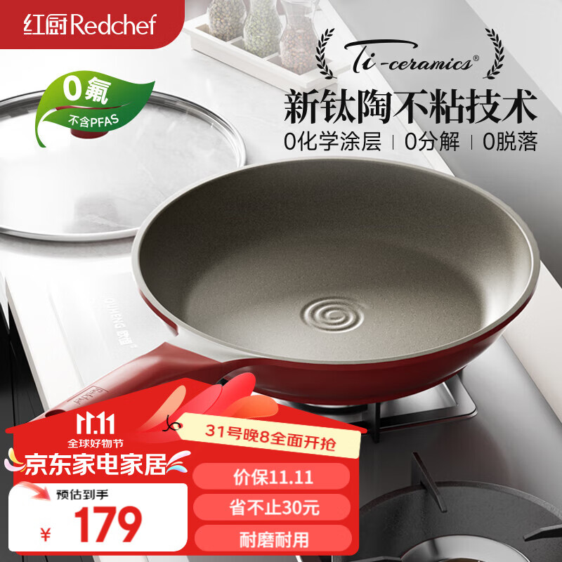 红厨有钛煎锅不粘锅陶瓷平底锅家用煎蛋煎牛排锅电磁炉燃气灶通用 【聚油不粘】新升级款煎锅 26cm