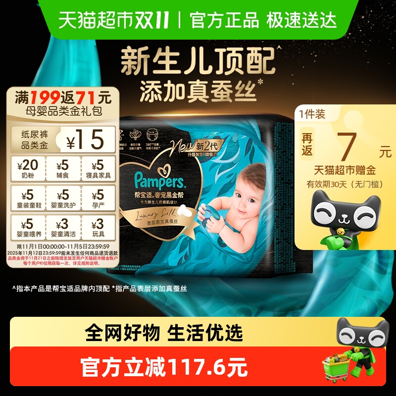 【新生儿顶配】帮宝适黑金帮纸尿裤拉拉裤真蚕丝NB-4XL超薄尿不湿