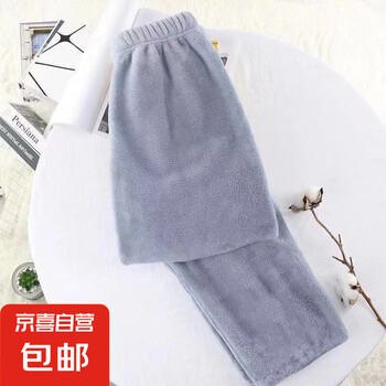 睡裤女长裤秋冬季珊瑚绒加绒暖暖打底裤可外穿秋裤 平板蓝色裤子1件 均码(适合80-130斤)