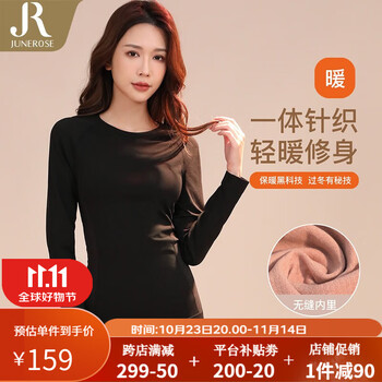 六月玫瑰 保暖内衣女2023年秋季新款高弹亲肤不紧勒秋衣秋裤套装 黑色 XL