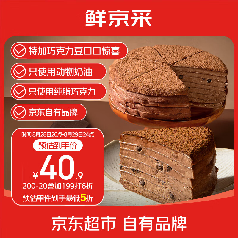 鲜京采巧克力千层蛋糕400g 6寸 冰淇淋蛋糕糕点零食慕斯 七夕礼物