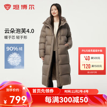 坦博尔2024新款冬季羽绒服女长款连帽加厚面包服美拉德外套530832 摩卡色 155/80A