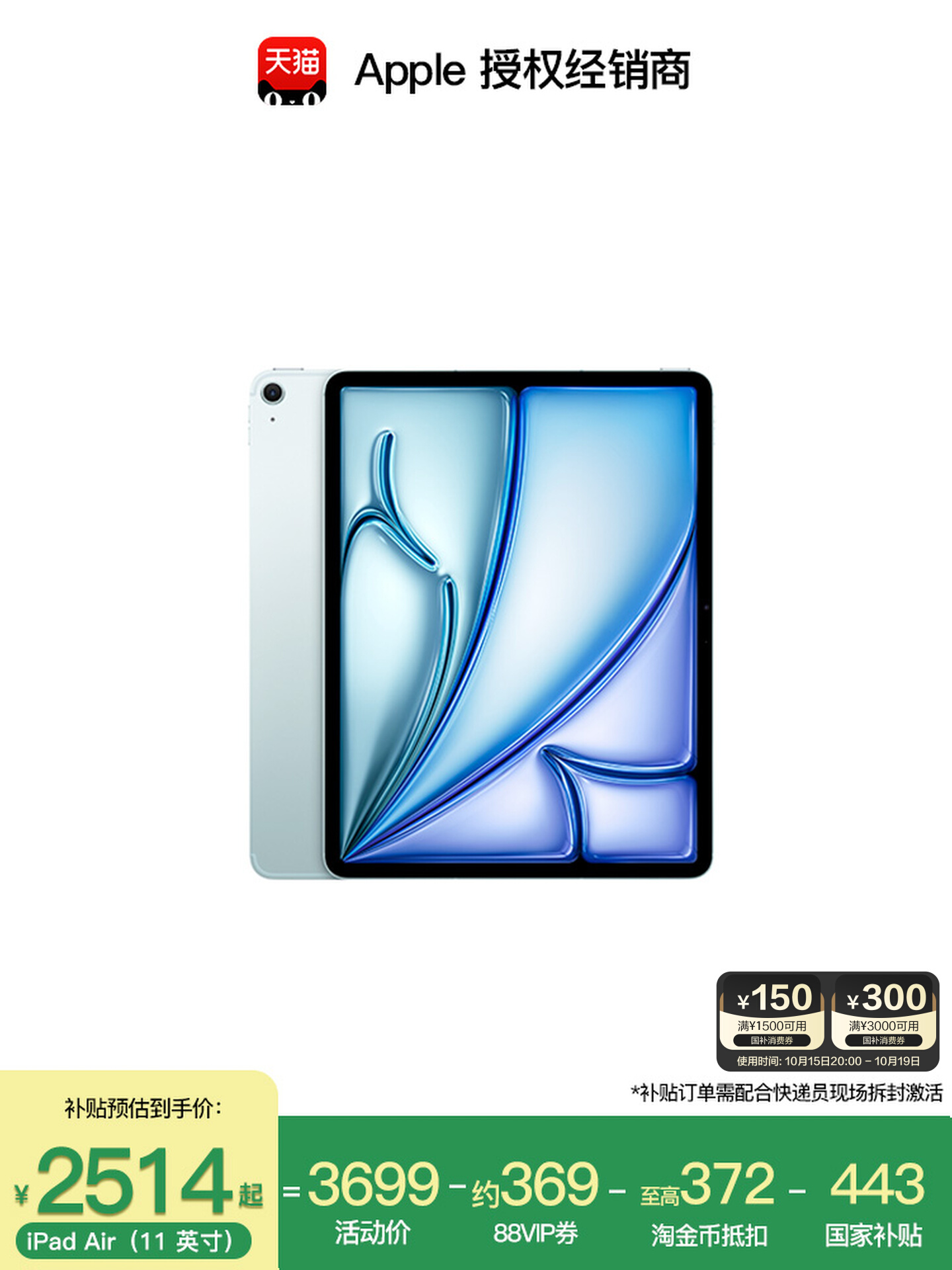【晒单返20/国家补贴15%】Apple/苹果 iPad Air 7 11英寸M3芯片平板电脑学生网课2025年新款iPadAir11WLAN