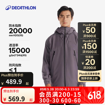 迪卡侬(DECATHLON)硬壳冲锋衣男女春秋登山防风防水单层夹克风衣运动外套MH500 2024 男-暮山紫 L