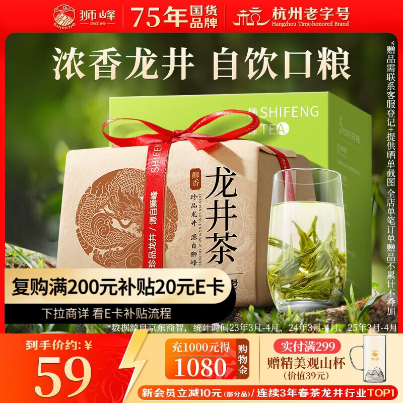 狮峰牌2025年新茶绿茶明前龙井43茶叶特级200g春茶钱塘纸包自己喝