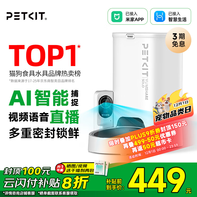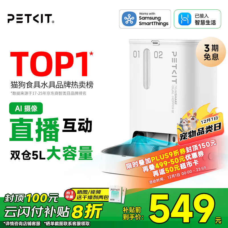 小佩AI宠物智能自动双子星喂食器可视版 定时定量 实时视频监控