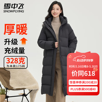 雪中飞羽绒外套女冬季过膝长款保暖美拉德连帽纯色系百搭休闲女士羽绒服 宝石黑 M (160)