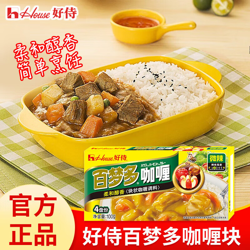 百梦多咖喱块 调味品 咖喱 厨房调味 儿童咖喱鸡拌饭佐料 好侍百梦多咖喱微辣味100g