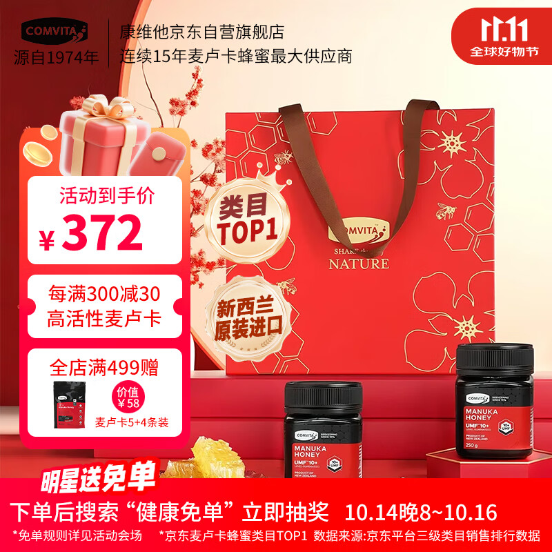 康维他(Comvita)麦卢卡蜂蜜礼盒装UMF10+ 250g*2瓶滋补营养品 送父母长辈节日礼物