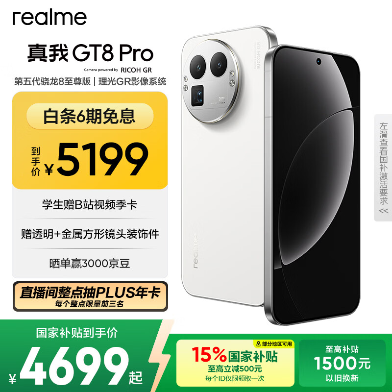 realme真我GT8 Pro OPPO 第五代骁龙8至尊版 电竞独显芯片 2K 144Hz高刷直屏 游戏电竞手机16+1TB白
