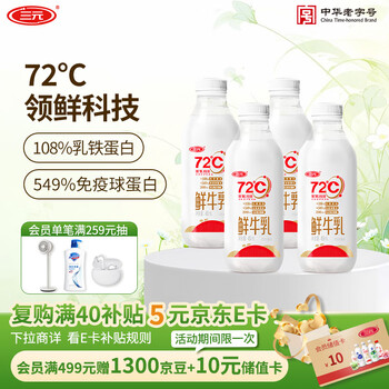 三元 72℃ 巴氏杀菌鲜牛乳450ml*4瓶 活性营养 鲜牛奶 鲜奶