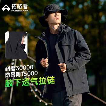 拓路者(Pioneer Camp)朱雀冲锋衣男硬壳户外旅行高海拔登山服春秋爬山外套防风防水透气 黑色-单冲腋下拉链款 XXL