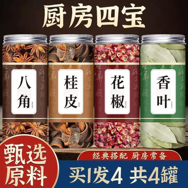 厨房四宝正宗八角大料香料调料大全八角桂皮香叶花椒 八角+桂皮+香叶+花椒 各1罐
