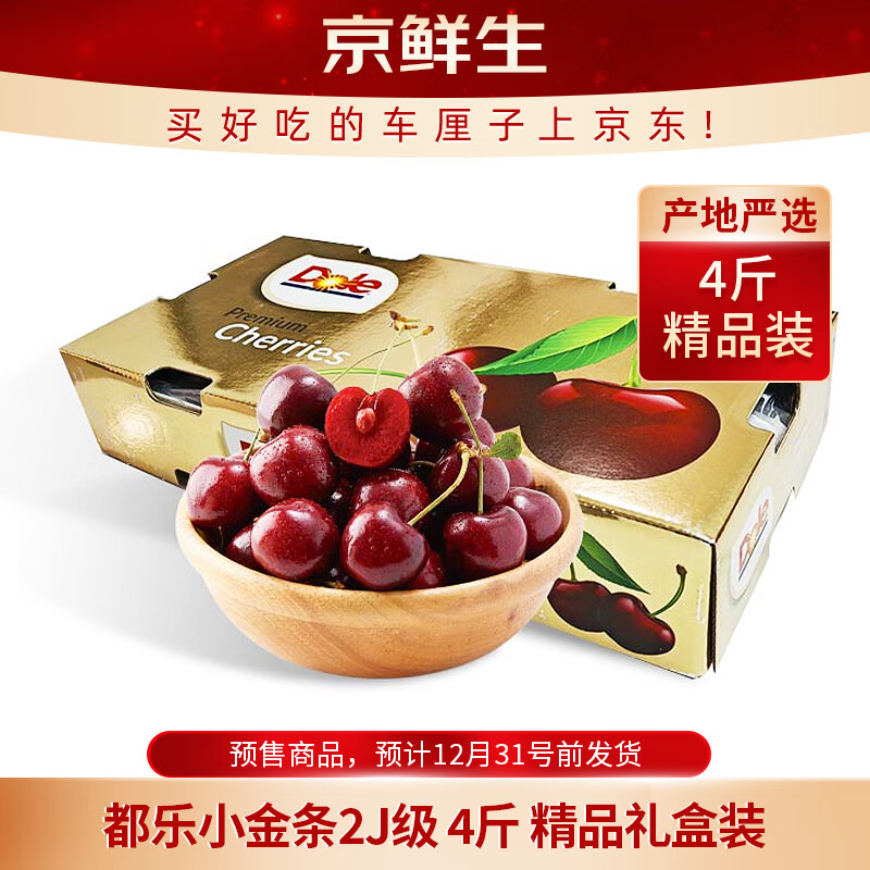 京鲜生【预售】都乐小金条车厘子2J级4斤礼盒装果径28-30mm 新鲜水果