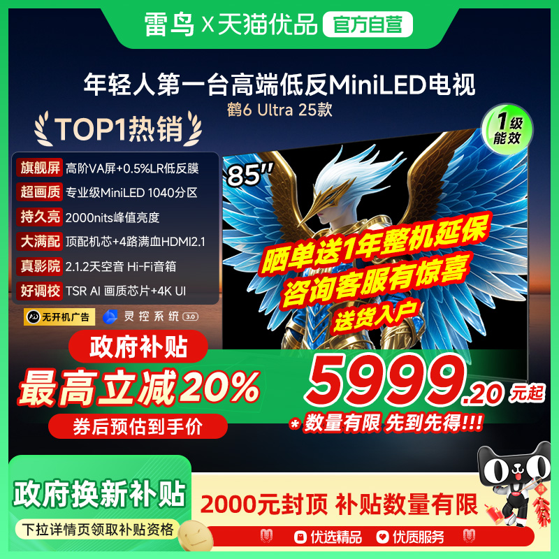 雷鸟鹤6 Ultra 25款85英寸MiniLED分区0.5%LR低反膜85S595C Ultra