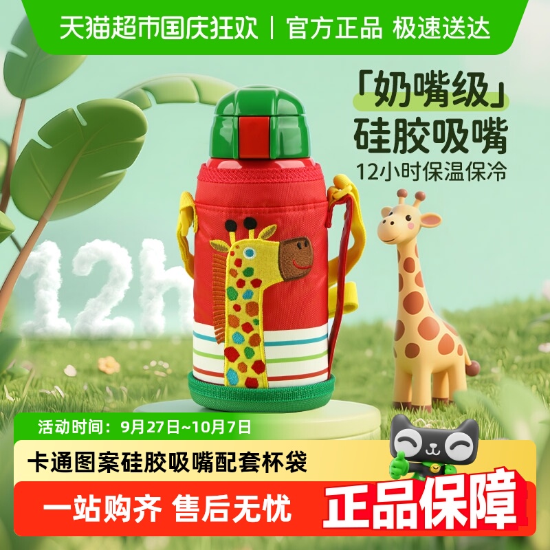 虎牌tiger萌趣卡通真空不锈钢吸管保温杯儿童学生上学专用保冷