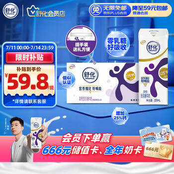 舒化 伊利舒化奶无乳糖牛奶 高钙型220ml*24盒 礼盒装 4月产
