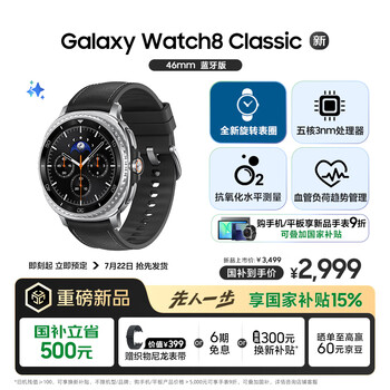 三星 Samsung【国家补贴】Watch8 Classic 蓝牙通话智能手表/运动手表/电话手表/旋转表圈 46mm 月陨黑