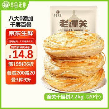 华田禾邦 潼关千层饼 2.2kg 20片 无起酥油肉夹馍饼胚 速食早餐半成品