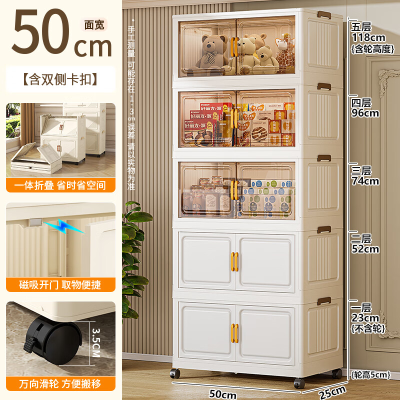 纳份爱加厚轻奢收纳柜衣服衣物置物柜储物整理柜客厅卧室零食折叠玩具箱 50cm面宽5层-加高加厚 【升级宽把手】免安装可折叠