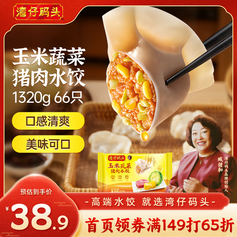 湾仔码头玉米蔬菜猪肉水饺1320g66只早餐食品速食半成品面点生鲜速冻饺子