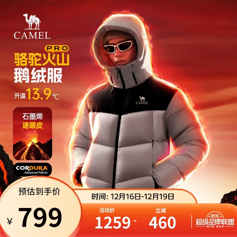 骆驼火山PRO鹅绒服迪丽热巴同款男女羽绒服加厚连帽外套M35CR07101