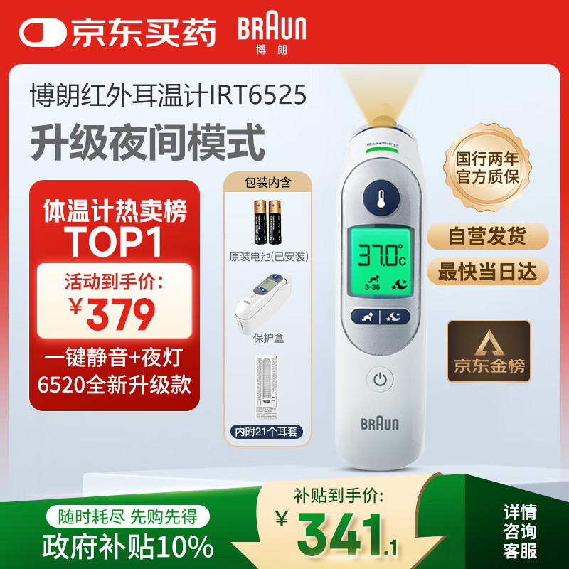 博朗(BRAUN)耳温计IRT6525耳温枪电子体温计宝宝婴儿老人体温枪医用测温度计