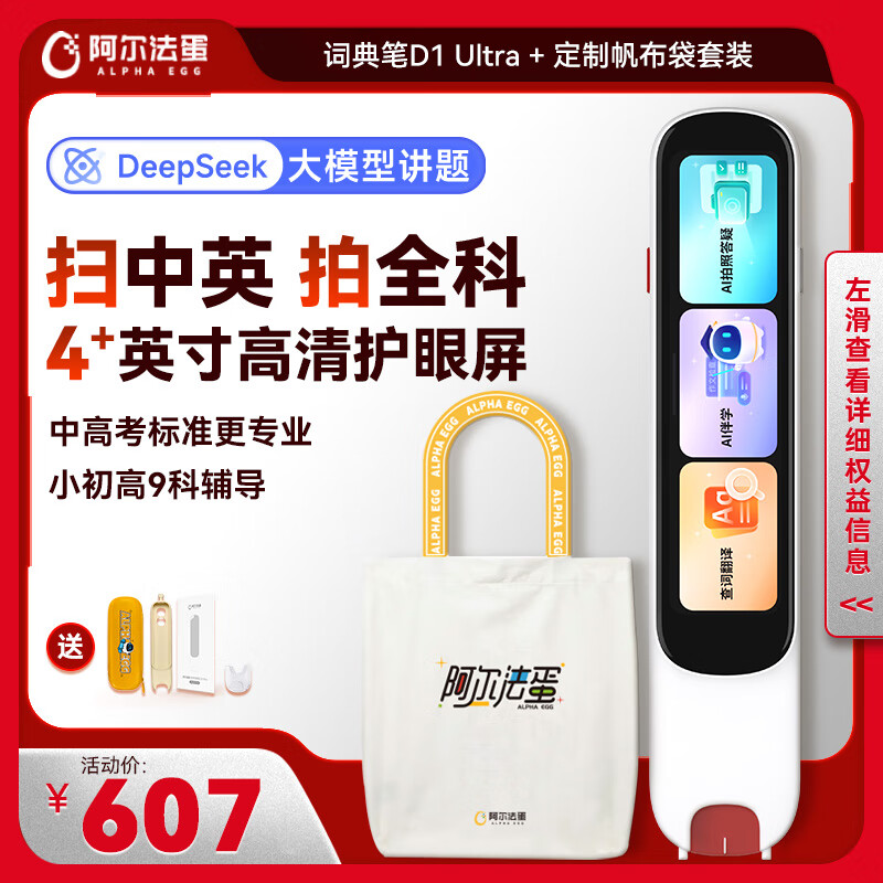 阿尔法蛋词典笔D1Ultra+帆布袋 英语点读笔翻译笔 小学初中高中同步拍照搜题全科学习笔 电子词典扫描笔