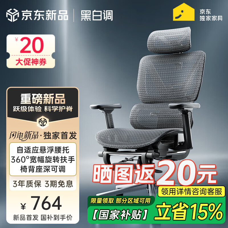 黑白调P3人体工学椅电脑椅办公人工力学座椅学习电竞椅子可躺国家补贴