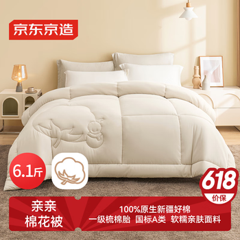 京东京造亲亲棉花被 100%新疆一级棉胎填充A类冬厚被子被芯 6.1斤 1.5x2m