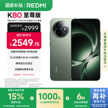 小米(MI)REDMI K80 至尊版 天玑9400+ 7410mAh大电池 云杉绿 12GB+512GB 红米5G手机