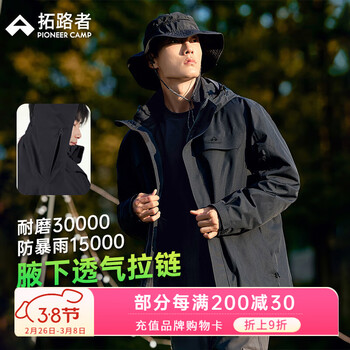 拓路者(Pioneer Camp)朱雀冲锋衣男硬壳户外旅行高海拔登山服春装夹克外套防风防水透气 黑色-单冲腋下拉链款 S