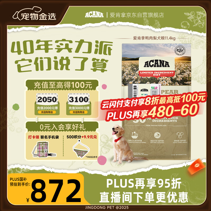 愛肯拿(ACANA)狗粮清火 鸭肉梨低敏去泪痕全价通用原装进口狗粮11.4kg效期26/5