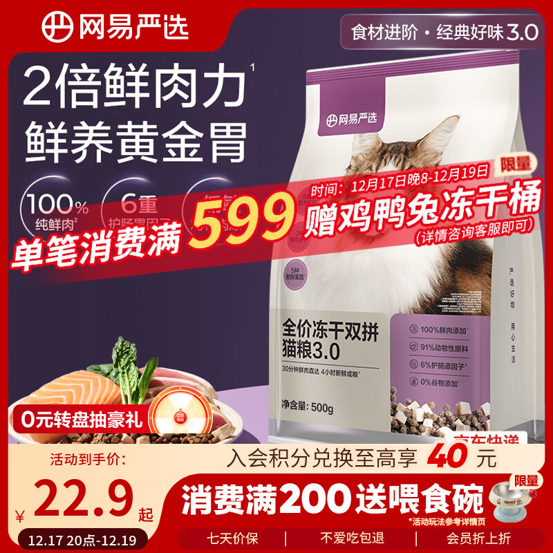 网易严选全价猫粮冻干鲜鸡肉无谷全价冻干双拼猫粮3.0升级款 500g试用装