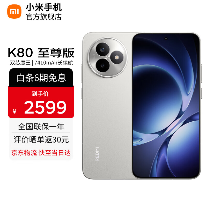 小米(MI)REDMI 红米K80至尊版 国家补贴 天玑9400+ 新品5G智能旗舰红米K80 Ultra手机 游戏电竞小米手机 月岩白 12GB+512GB 【官方标配】