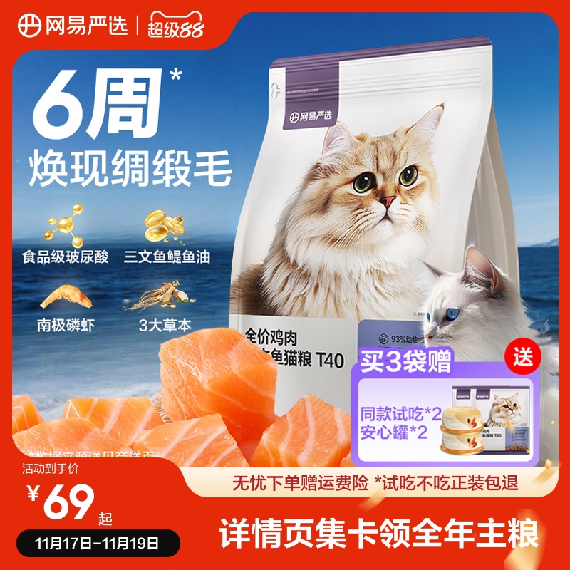 网易严选猫粮全价鲜鸡肉三文鱼冻干成猫幼猫猫粮磷虾鱼油美毛猫粮