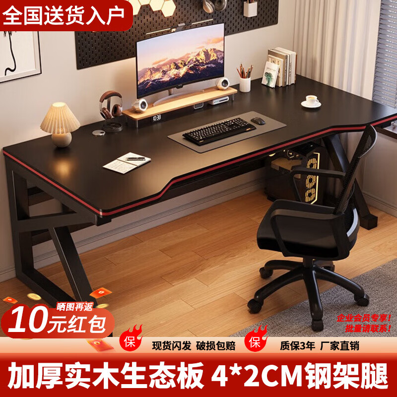 普派实木电脑桌台式电竞游戏桌家用桌椅套装书桌学习桌子办公书桌 亏本冲销量:【实木】黑红线140cm单桌