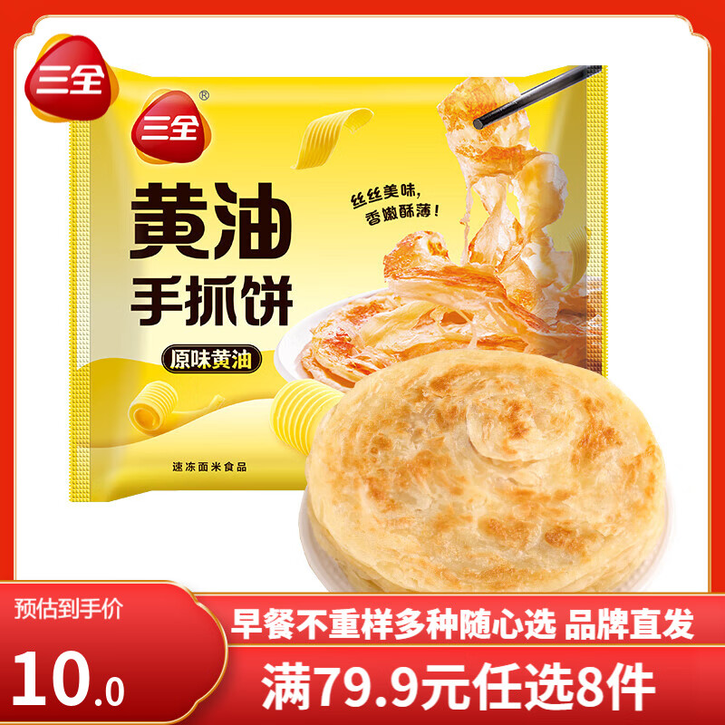 三全手抓饼面皮 葱油饼 黑椒牛肉馅饼 速冻 速食食品 早餐半成品 原味黄油手抓饼 320g