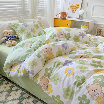 流川枫全棉四件套40支纯棉活性印花床单式四件套全棉清新套件 吉米熊-XD 1.5/1.8m床(被套200*230cm)四件