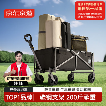 京东京造 户外露营车 折叠收纳营地车小推车拖车 野餐摆摊出行装备 石墨黑