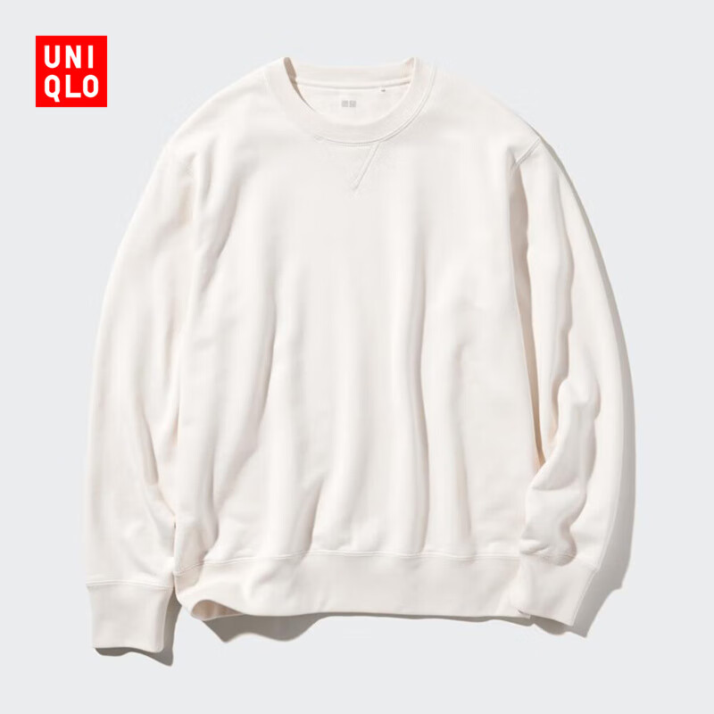 优衣库男装/男女同款卫衣长袖运动衫圆领休闲纯色百搭469926 465199/01乳白色 4XL /185/128C