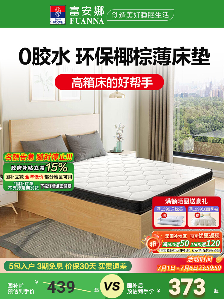 富安娜床垫椰棕偏硬护脊薄垫硬垫榻榻米乳胶棕垫租房学生宿舍床垫
