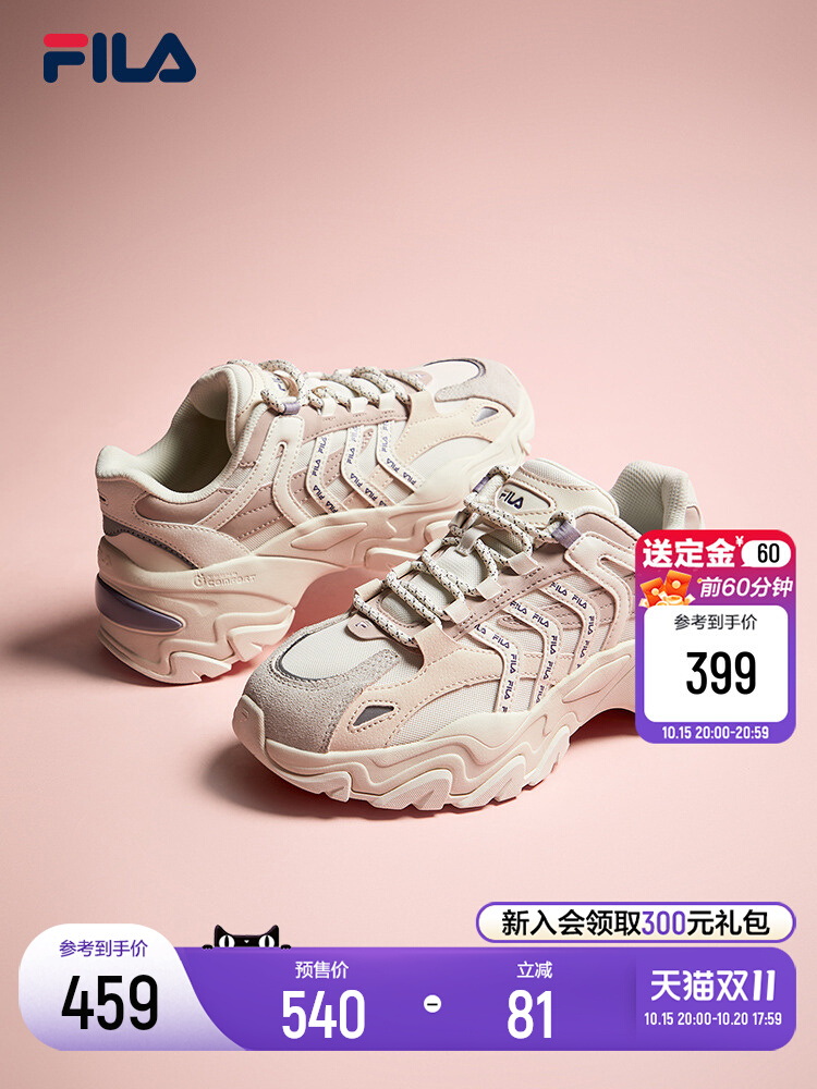 FILA 斐乐鱼刺2代老爹鞋女鞋反光休闲鞋秋季鞋子厚底增高鞋运动鞋